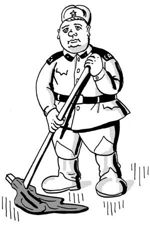 Вбежав в роту, я увидел дневального, стоявшего у тумбочки и нехотя отдававшего нам честь, и толстого солдата с глупым выражением лица, который тоже стоял рядом, на некотором отдалении, но со шваброй в руках.